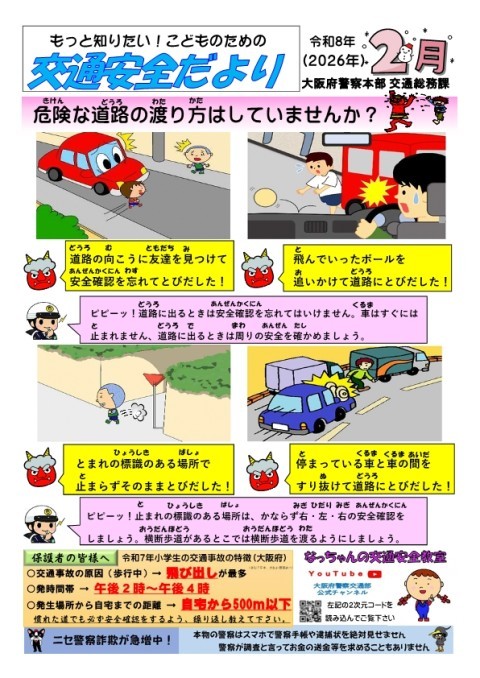 大阪府警察本部より2月の交通安全だよりが届きましたので,お知らせします。
