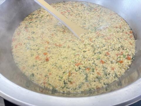 さかいっ子丼には堺のめぐみの小松菜と、細切り昆布を入れて、そぼろ丼風に仕上げています。