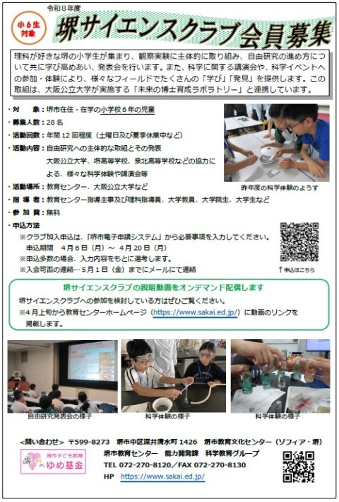 「堺サイエンスクラブ」会員募集!(6年生)