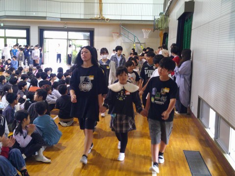 4月15日の朝、体育館で1年生と上級生の対面式を行いました。