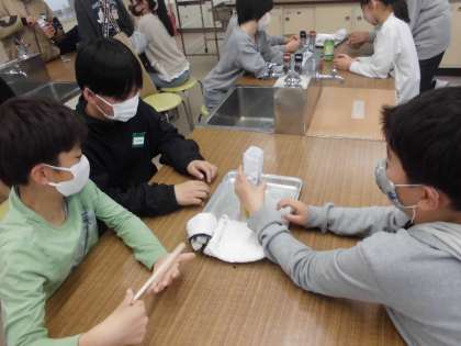 4月11日 6年 ものの燃え方 公開日 2023/04/12 更新日 2023/04/12 6年生 今日は令和5年度が始まって2日めです。 さっそく1時間めから理科の実験をしているクラスがありました。 6年生の最初は「ものの燃え方」です。 先生の話をしっかりと聞いて、安全に注意して実験していました。 さて、結果の方はというと…残念ながら思った通りに割りばしは燃えてくれませんでした。 どうすれば、割りばしが完全に燃えきるのでしょうか。 学習を通して考えていきます。
