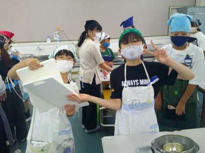 6年1組は調理実習をしました。 野菜炒めを作りました。