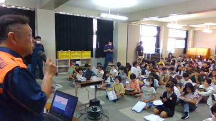 今日は総合的な学習の時間で、消防署の方に来ていただきました。