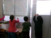 算数の時間に「三角形と四角形」の学習をしています。形を組み合わせたり、仲間分けを...