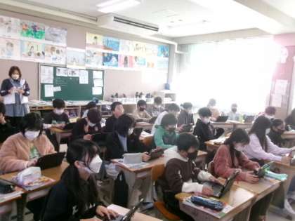 戦争が終わってからの日本の経済状況について、タブレットをつかってまとめていました。