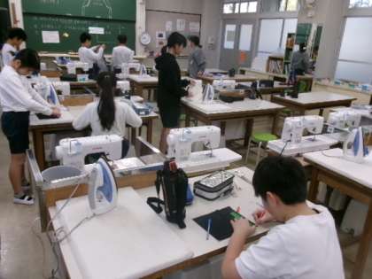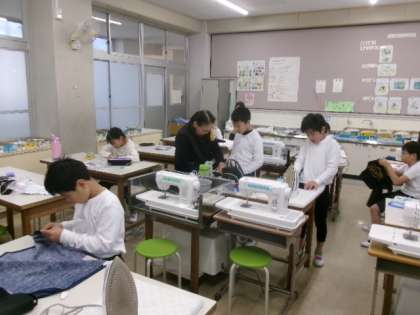 5年生は家庭科の時間に、エプロンを作っています。