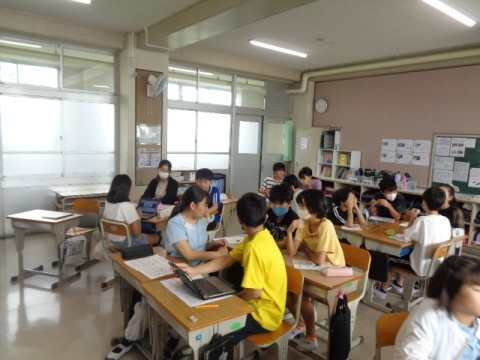 1組の教室で、2組の先生が体育の授業をしていました。