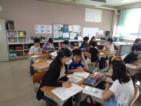 シンクロマットという、マット運動を組み合わせる表現運動の計画を友だちと相談していました。