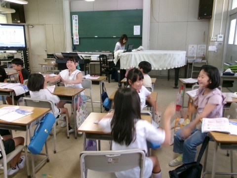 音楽の時間がありました。リズムに合わせて手をたたいていました。
