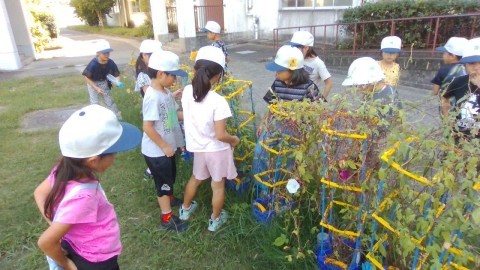 7月のあさがおと比べて、枯れたり、種ができたりしてきました。