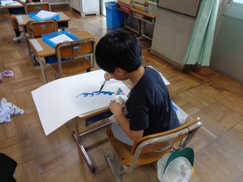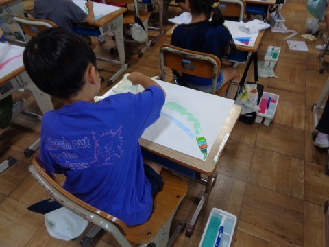 クレパスのクラッカーから、絵の具でかいた色々な線がとび出してきました。