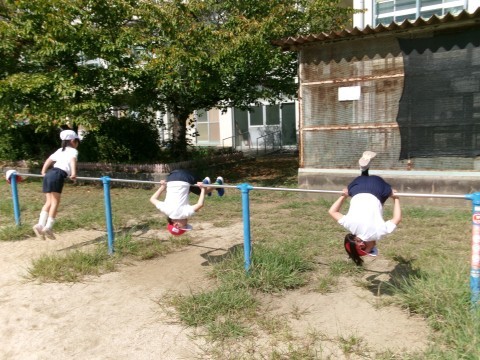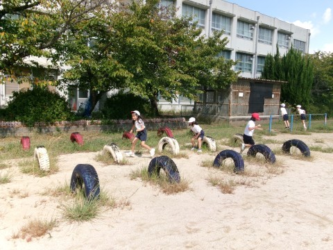 運動場で体育をしました。少し涼しくなってきました。