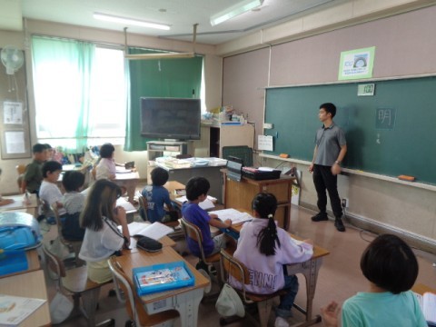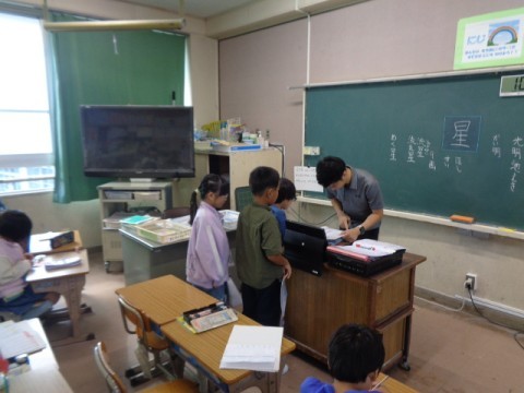 漢字の読み方を皆で確かめてから、漢字の練習をしていました。
