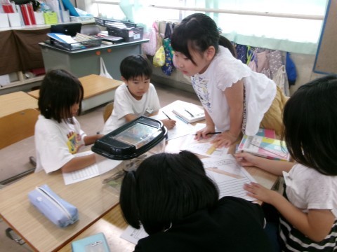 生活の時間に、生き物の観察をしました。カマキリ、バッタ、カナヘビなど自分たちで観察したい生き物を選んで、絵を描いたり、様子を文章で書きました。