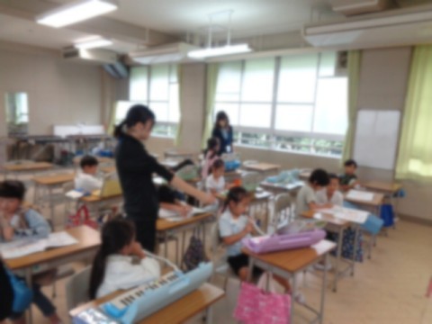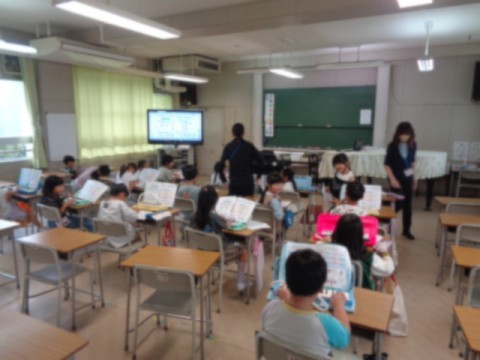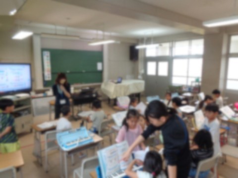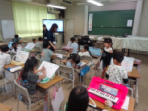音楽室で、鍵盤ハーモニカの練習をしていました。