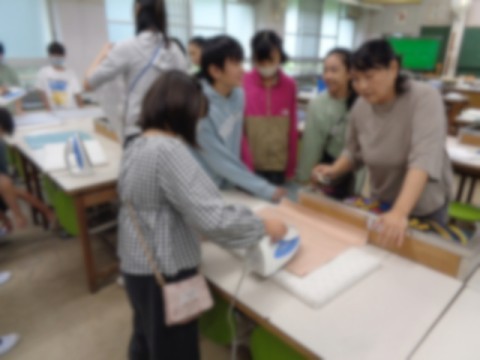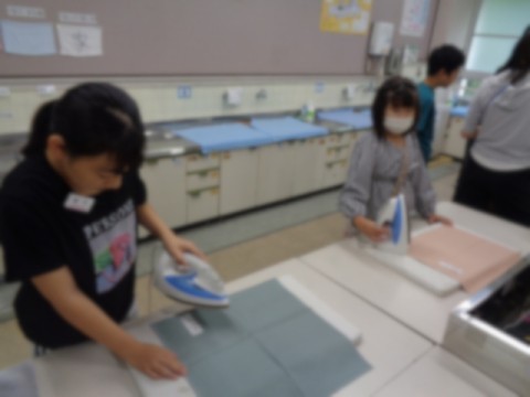 布の種類に合わせてアイロンの温度を決めてから、アイロンがけをしていました。