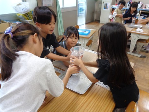 2つのペットボトルはどちらが多く入るのでしょうか?
