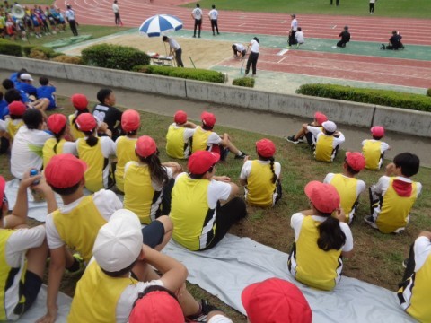 6年生はそれぞれ、100m走、80mハードル走、ソフトボール投げ、走り幅跳び、400mリレーに出場をしました。