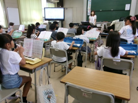 音楽の時間がありました。「ヤッホー」をいろんな言い方で言って真似したり、鍵盤ハーモニカの練習をしたりしました。