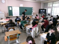 自分の作った英語のクイズを,グループの友だちに聞いて答えてもらっていました。