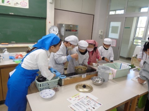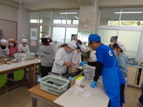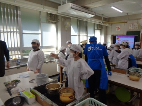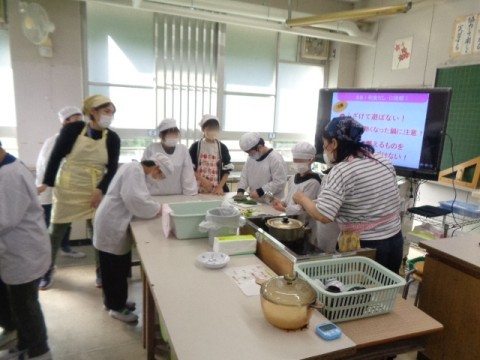 5年生が調理実習として,ご飯炊きとお味噌汁作りをしていました。