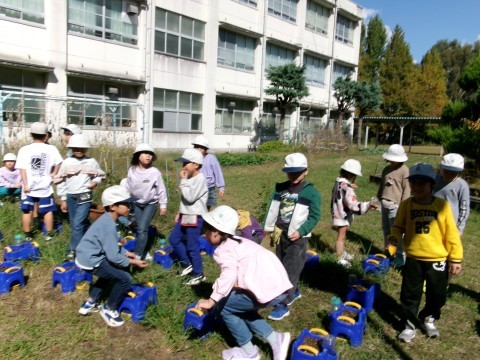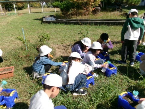 先週、種をまいたラディッシュの植木鉢を見に行きました。芽が出始めていました。