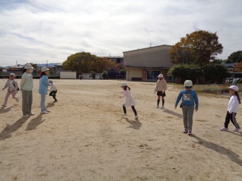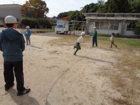 体育委員会のお兄ちゃん,お姉ちゃんが大縄をしてくれました。