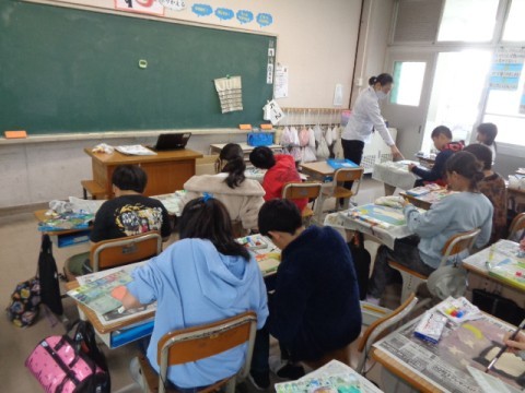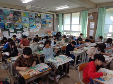 糸のこぎりを使って作った木製の伝言板に,色をつけていきます。