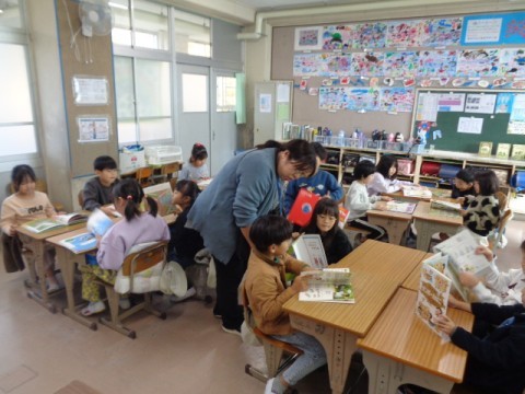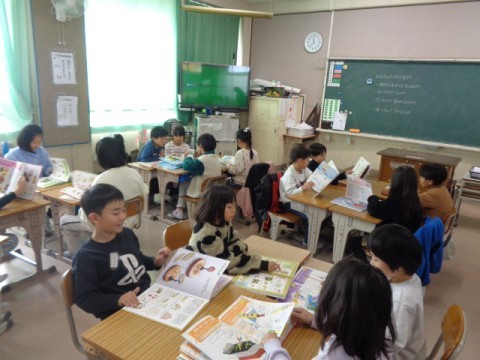 今日は,手作りおもちゃの本を使って,1年生が楽しんでくれそうなおもちゃを調べていました。