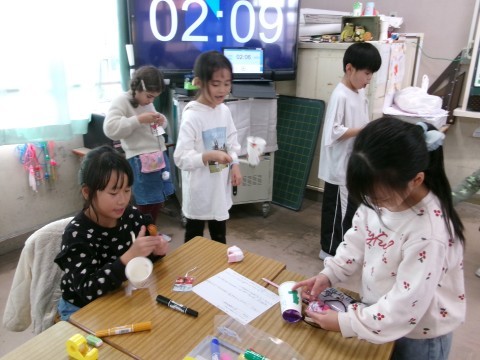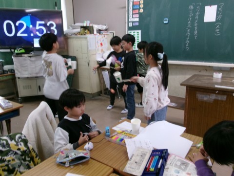 国語の時間に学習したおもちゃの作り方の説明文を参考に、「紙コップけん玉」の作り方のメモを書きました。