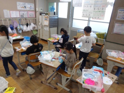 図工の時間でしたが,「ふわふわゴー!」という制作活動をしていました。