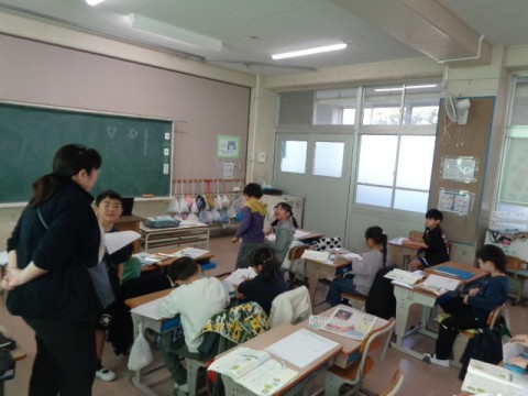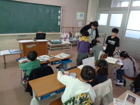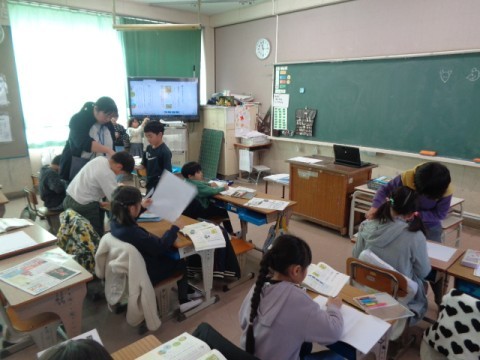 主人公などの登場人物や出来事を一人で考えたり,友だちと考えたりしながら,お話を書いていました。