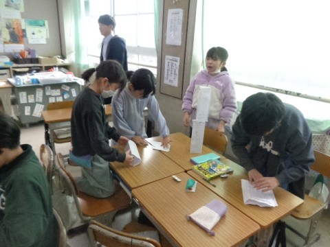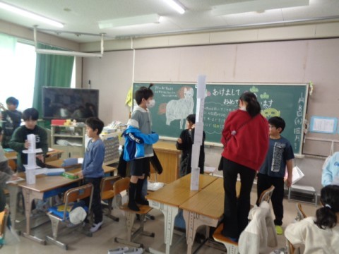 4年生が,ペーパータワーを高く積み上げるゲームをしていました。