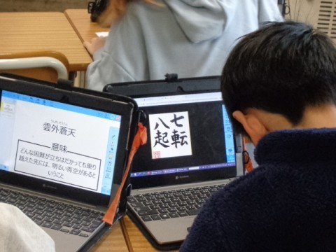 5年生が,今年の抱負を表す四字熟語を調べていました。
