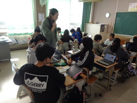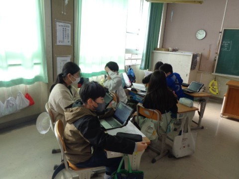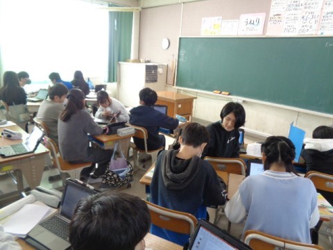 調べた内容をパワーポイントにまとめて,プレゼンテーションの練習をしていました。