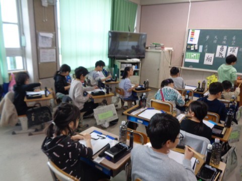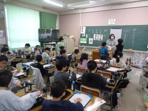 3年生が習字の勉強をしていました。