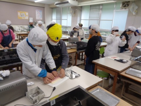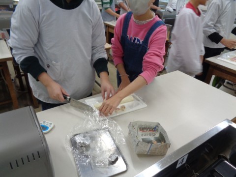 6年2組の子どもたちが,チョコパイとベーコンチーズパイを作っていました。
