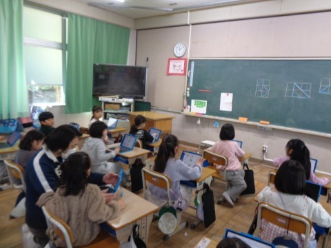 1年生が,タブレットを使って勉強をしていました。
