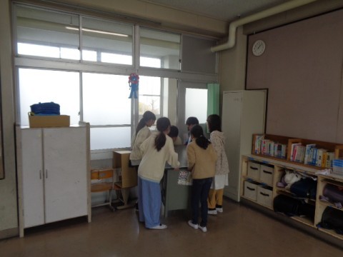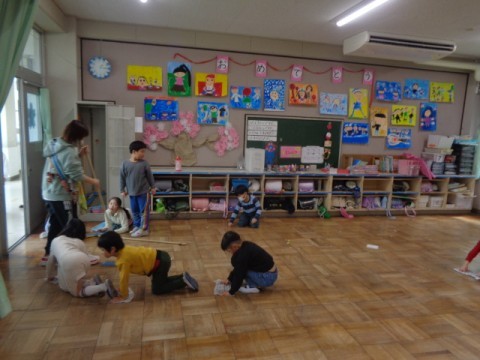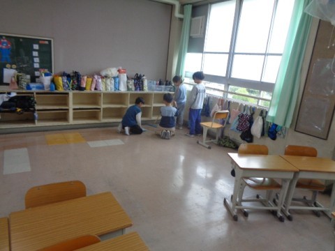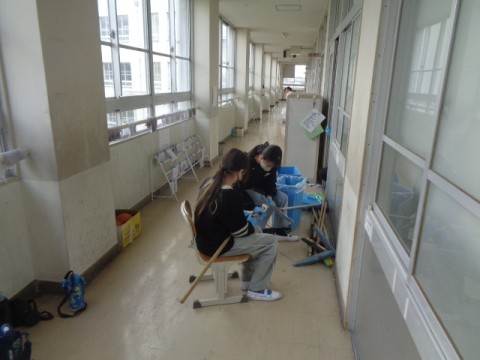 机を椅子を教室から出して,いつも以上にピカピカに掃除をしていました。