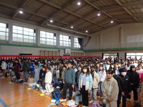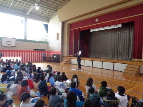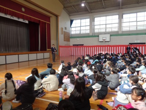 体育館に全校児童が集まり,修了式を行いました。