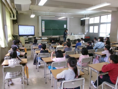 教科書の絵や楽器などを見たり、曲を聴いて体を動かしたりしました。みんな楽しそうに歌ったり聴いたりしていました。