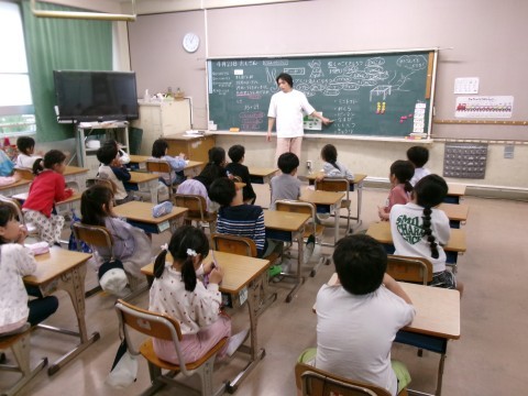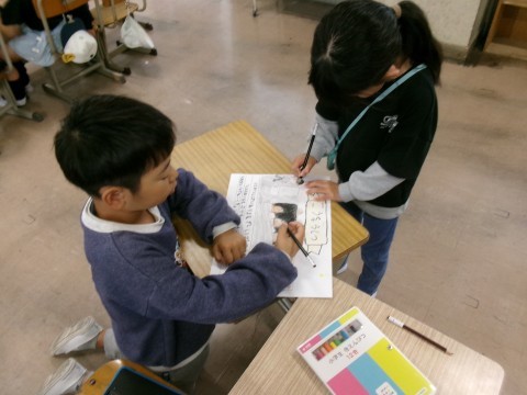 生活科の学習で「学校たんけん」の準備で,いろいろな教室・部屋の看板を作りました。絵と文でその教室・部屋の説明になるように頑張りました。