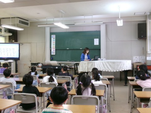 音楽の授業がありました。城山台小学校の校歌を教えてもらいました。