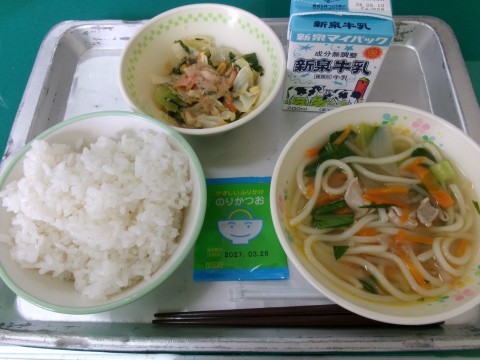 今日の給食 4/27(月) 公開日 2026/04/27 更新日 2026/04/27 今日の給食 今日の給食は ごはん 牛乳 五目ラーメン 小松菜サラダ ごまドレッシング ふりかけ です。今日は「堺のめぐみ」の日でした。「堺のめぐみ」とは,堺市内で栽培・収穫された安心・安全な農産物です。給食カレンダーに「堺のめぐみ」のマークがある日は,堺市でとれた野菜が使われています。