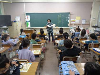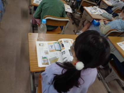 初めての習字の学習がありました。道具の名前やつくえの上に置く方法を学びました。
