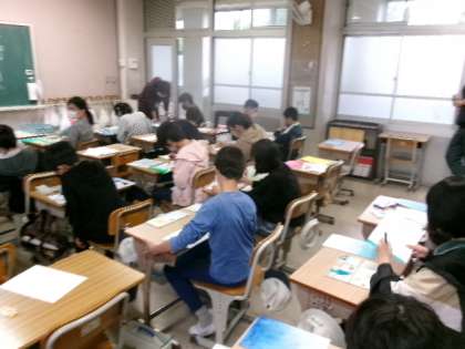 銀色にしよう 公開日 2023/04/19 更新日 2023/04/19 6年生 6年生が、絵の具を使って、グラデーションの作品をつくっていました。 「銀色にしよう!」 「青色にしよう!」 一人ひとりが自分の好きな色を使って、作品作りに取り組んでいました。