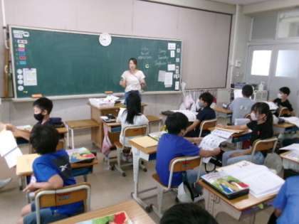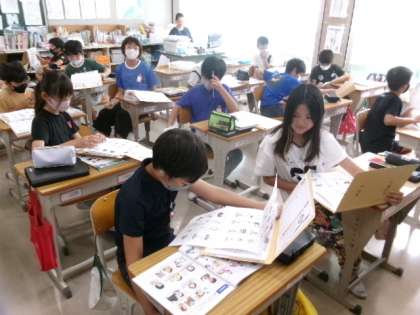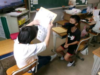 5年生は、外国語の勉強をしていました。 今日はペアになって、英単語クイズをしていました!