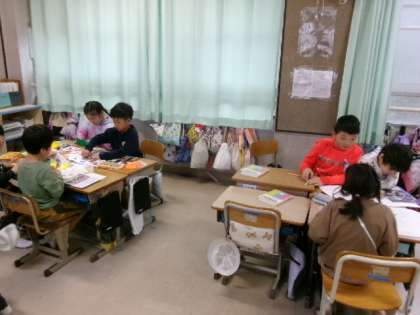 画用紙にルールや遊び方を書いて、おもちゃランドに向けて頑張っていました。