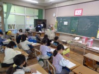 1年生が、色鉛筆の使い方の練習をしていました。