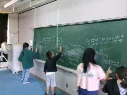 やってみよう 書いてみよう 公開日 2024/09/25 更新日 2024/09/25 4年生 4年生が、空気でっぽうの実験をしていました。 空気でっぽうの玉を遠くへ飛ばす中で気づいたことを、黒板にドンドン書き込んでいました。とても意欲的でした!